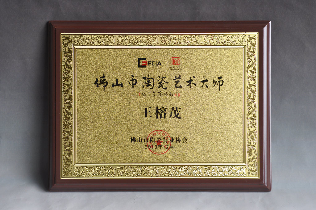 ![]() 首届佛山陶艺大师牌匾 - 佛山市陶瓷行业协会颁发 |